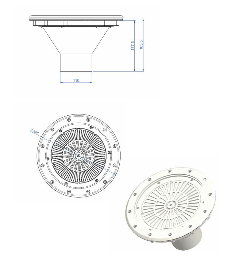 Bodeneinlaufdüse 3" regulierbar – mit weißem ABS-Rost