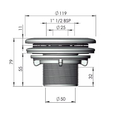 Anschluss: 2" Außengewinde oder Ø 50 mm Innen-Klebeanschluss